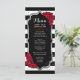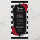 Meny Kort. Klassiskt svart vitt rött formspråk med falskt glitter silver. Svarta och vita ränder med röda rosor. Perfekt för en elegant fest.