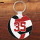 Välj ditt eget färg! Den här nyckelkedjan för volleyball i lagret färg innehåller bilden av en röd, svart och vit volleyball på framsidan och en enkel vit volleyboll på baksidan - anpassa med idrottsmannens jersey-nummer på framsidan och namn och namn på baksidan - för att ändra färgen på volleybollens röda och svarta paneler och texten, klicka på knappen "Redigera denna design" (ovan) - av katz_d _Zynor