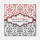 Svartvit rött dammbad bröllopet anpassningsbar Spara datum magneter. Den övre delen är av rött och vitt fuktmönster och grund är av svart och vitt. Ett rött rand skiljer de två delarna åt. Texten skrivs på en elegant med vit och röd kontur.