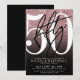 Rosa och svart roséguld glitter 50-års födelsedagsinbjudan. Fira femtioårsdagen med stil med denna djärva och chic design. Den övre halvan har en stor vit ”50” med ett fräckt handskrivet svart skrivstil ”Fifty” lagt över, som sticker ut mot en falsk roséguld glitterbakgrund som bleknar till en snygg svart gradient. Den nedre delen är helsvart med festsdetaljer i ett rent sans serif vitt typsnitt för en modern och slående look. Färger för typsnitten och bakgrunden kan anpassas för att passa din tema.