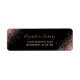 Denna eleganta moderna bröllops returadressetikett har en rose gold falsk glitterdesign som är diagonalt arrangerad i två hörn. Den anpassningsbara texten kombinerar blek rosa rosa handstil och kopparplåtstypsnitt på en svart bakgrund.