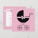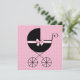 Bedårande rosa prickig med elegant svart barnvagn insvept i en söt rosa rosett. Elegant och söt rosa prickig inbjudan till baby shower för flicka. Lägg till dina detaljer på framsidan och/eller baksidan genom att lägga till dina evenemangsuppgifter, typsnittsstil, teckenstorlek och färg samt formulering.