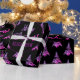 Svart rosa purpurfärgat julgranmönster för elegant presentpapper