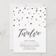 Fira din speciella dag med denna enkla inbjudan till 12-års födelsedagsfest för flickor. Denna design har ett stilrent bokstavsstil "Tolv" med hexagonformad konfetti i en svart och roséguld färgkombination. Fler designs finns tillgängliga i min butik BaraBomDesign.