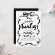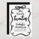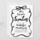 I denna inbjudan till 30-årsfirande dansar en handskriven svart borstbokstav över sidan med uttrycksfulla streck och lekfull rörelse, vilket gör budskapet "Hon knyter sina tjugofyra" levande, modernt och fullt av personlighet. Den lockiga svarta bågramen drar allt samman till en djärv, sammanhängande komposition. Designad för en hedersgäst som uppskattar modern design med en touch av konstnärlig flärd.