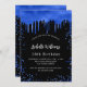 En giftig och feminin 18:e (eller någon ålder) födelsedagsfest inbjudan. På framsidan: En svart bakgrund för chicen. Dekoreras med royalets blå färgdroppstift. Anpassa och lägg till information om namn och party. Namn är skrivet med ett handskript i stil.