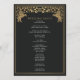 Luta magin i din stora dag! Dessa medeltida fantasi-bröllopsprogram har en regal lejon omgiven av invecklade guld-blommigtar och ett monogram mot en svart bakgrund, där elegans blandas med en gnutta storhet. En perfekt för din saga firande! Den guld som finns på den här posten är INTE äkta och trycks i platt färg.