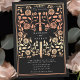 Gå in i en berättelse om romantik och legend! Dessa medeltida fantasibröllopsinbjudningar visar ett kungligt svärd invävt med roséguld blommor på en svart bakgrund. De är perfekta för par som söker en förtrollande och tidlös touch för deras speciella dag. Observera att roséguld på dessa inbjudningar INTE är tryckt med äkta folie och är tryckt i platta färger.