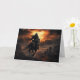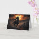 När den eldiga solen går ner kommer en svart ryttare galopperande mot betraktaren på detta spökliga Halloween-kort.