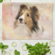 Härligt svart Sheltie eller Shetland Sheepdogansikte på för bakgrundshund älskare för pastellfärgad målning en ljus kökshandduk