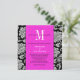 Svart Shock rosa Monogram-bröllopsinbjudan Inbjudningar