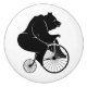 Björnsilhouetten som rider en traditionellencentmynt-farthing cykel som är bekant som en kick, rullar också eller kickperson som drar en skottkärra. Original- illustration. För att cykla entusiaster.