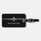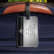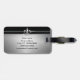 Dessa ska svart märkre för silverFleur de Lis bagage hjälper dig att hålla för att spåra av ditt bagage i stil. Bagagemärkrna presenterar en svart bakgrund som delas av en silverrand som dekoreras med ett efterföljd borstat metallFleur de lis symbol. Baksidaen presenterar det samma symbolet på imittionen borstad metallbakgrund. Personifiera med ditt namn beklär på och information om kontakt på baksidaen.