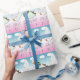 Denna gulliga svart pojke- & flickatwillingarbaby shower som slår in papper, presenterar en blått-, vit- och rosabakgrund, moln och en tvilling- bärande svart för stork, en pojke och en flicka. Bebis har blont hår och nappar i ett ljust - den gröna filten med den gröna tryckfilten. Flickan har ett grönt hårband. Dekorativ text är baby shower, det är twillingar! Perfekt för inpackning av baby showergåvor. Välj ditt massmedia och format av inpackning av papper.