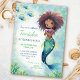 Dö ner i äventyr under vattnet med vår Sjöjungfru Birthday-inbjudan! Den här vattenfärgen har en charmerande Afro-amerikansk sjöjungfru och vänlig fisk i blått och grönt-nyans. Den anger perfekten för din lilla speciella dag. Texten är helt redigerbar, vilket gör att du kan skapa en unik inbjudan som är lika speciell som födelsedagsflickan själv. Låt sjöjungfruns magi börja!