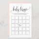 Lägg till den här roligten och baby bingo-spelet till barnduschen. Den har ett svart, vismiskt skript, klassisk typografi och rosa. Du kan anpassa baksidan av det här babyduschkortet. Det här baby-bingokortet är perfekt för vilket babyduschtema och årstid som helst.