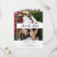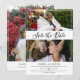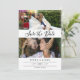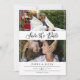 Spara datumkortet på dubblan med två foton i en ren kollage på ena sidan och ett större foto på den andra. Spara datumet skrivs i ett romantiskt svart skript. Lägg till namn- och bröllop-informationen i en minimalistisk och elegant typografisk design. På baksidan kan du också lägga till webbplatsen bröllop.