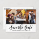 Meddela din bröllopsdag med den här moderna och visuella 3-fotokollage spara vykortet för datum. Det här anpassadet har ett fotovykort som saknar modern calligraphy-övertäckning. Denna design finns även på andra kort och på färg.