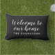 Fet vitt skript skriver ut Välkommen till Vårt Hem på en dramatisk svart bakgrund, i par med ditt personliga familjenamn i rena versaler. Denna högkontrastiga ytterkudde levererar en modern, sofistikerad look som förhöjer varje främre veranda eller täckt uteplats. All text är fullt anpassningsbar.