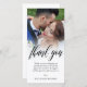 Fotokortets personlig med ditt eget bröllop-foto. Tack för att du skrev ett fantastiskt svart skript ovanför ett personligt meddelande till gästerna i bröllop. Kant mellan fotot och text från bröllop mjukas upp med en vit övertoning. Lägg till namnen också!