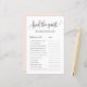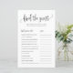 Lägg till den här roligten och spela spelet "Hitta gästen" i evenemanget. Den har ett svart, vismiskt skript, klassisk typografi och rosa. Du kan anpassa baksidan av det här möhippans spelkort. Det här Hitta gästspelkortet är perfekt för alla teman och möhippor.