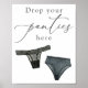 Skylten 'Släpp dina trosor här' passar perfekt ihop med spelkorten för trosor för en möhippa eller lingeriebrus.