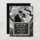 Ladda upp ett eget foto för att skapa ett Spara datumkort för bröllop. Det här datumet har en svart stil-skylt på brev som är redo att vara personlig med namn och bröllop.