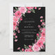 Denna design har en slående kontrast mellan en djup midnattsbakgrund och livfulla blommande blommor. En frodig palett av fuchsia, rosafärgad och mjuka rosatona skapar en djärv, romantisk estetik. Detaljerade illustrationer av öppna rosor, ranunkel och ömtåliga körsbärsblommor paras med dämpad salvia-grönska för en sofistikerad look.