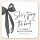 Lägg till en chic och modern touch till din bröllopsfest med våra fyrkantiga pappersbricka "She's Tying the Knot" med svart band. Med en snygg svart bandbåge och elegant minimalistisk design är dessa brickor perfekta för coquette-, svart-vit- eller sofistikerade bröllopsfest-teman. Använd dem vid dryckestationer, dukningar eller som snygga partygåvor. Helt anpassningsbara - lägg till din egen text för att matcha din händelse. Tryckta på hållbart papper och redo att imponera på dina gäster!