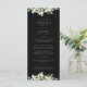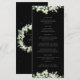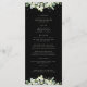 En svart, 4-rätters bröllopsmeny, med en kant av handmålade snöbär och eukalyptus på framsidan och en krans på baksidan. All text är fullt redigerbar, och de spridda prickarna på fram- och baksidan kan raderas innan beställning om så önskas. Vänligen se denna kollektion i min butik för menyer med alternativa blomsterarrangemang och i olika storlekar/färger/ former. Koordinerande artiklar finns också tillgängliga.
