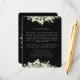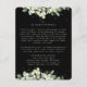 Ett svart platt bröllopsfäste för bröllopsreseinformation eller för anvisningar om er mottagning är på en annan plats. Utformad med en kant av handmålade snöbär och eukalyptus på framsidan och en krans på baksidan av kortet. All text är helt redigerbar och de spridda prickarna på fram- och baksidan kan raderas innan beställning om ni önskar. Detta kort finns tillgängligt med alternativa botaniska mönster, i liggande format och i olika färger. Vänligen se Kollektionen i min butik för att se alla alternativ och matchande artiklar.