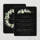 Ett svart platt bröllopsfäste för all din bröllopsinformation: online-svar/RSVP, boende, reseinformation, gåvor, bröllopswebbplats med mera. Med en elegant stjälk med handmålade snöbär och eukalyptus på framsidan och en krans på baksidan av kortet. All text är helt redigerbar och de spridda prickarna på fram- och baksidan kan raderas innan beställning om du föredrar det. Detta kort finns tillgängligt med alternativa botaniska mönster, i liggande format och i olika färger. Vänligen se kollektionen i min butik för att se alla alternativ och matchande artiklar.