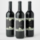 Svart Snöbär+Eukalyptus Vinterbröllop Vinflaska Etikett