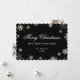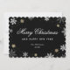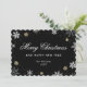 Elegant svart högtidskort med en charmig ram av fallande snö, snöflingor och stjärnor mot en svart bakgrund. Ett elegant skrivstil används för att ge detta gratulationskort en mer festlig look. Anpassa enkelt detta icke-fotobaserade högtidskort online.