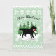 Julkort för träd och för snöflingor för svart Labrador jul vintergröna för hund älskare som älskar Labradors. Härlig svart Labrador Silhouettedesign med den Santa hatten. Snö- och evergreenträd. Skapat av Naomi Ochiai.