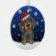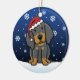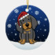 Gullig prydnad för svart- & solbrännaCoonhoundjul som dras i kawaiitecknad! Denna förtjusande hund aveln ha på sig en röd Santa hatt, och snöflingor faller lite varstans honom. Absolut bedårande, perfekt för hund älskare julaftonträd!