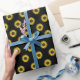 svart bakgrundssolros för snyggt som slår in papper. perfekt för din favorit- blommaälskare. planlägg baserat av ett mönster för vintage1800sbroderi