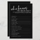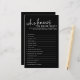Skruva upp möhippan med den "must-have Black" som känner till "Bride Best Möhippa Game"! Detta minimalistiska spel ger möhippan ett nyktert fläkt med dess rena, contemporary design. Med omtänksamma motiv för att avslöja brudens personlighet och preferenser uppmuntrar detta spel till skratt och vänskaplig konkurrens mellan gästerna. Det kommer att glädja bruden att upptäcka vem som betalar närmast uppmärksamhet på de små detaljer som gör henne unik.