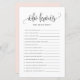 Vem vet bruden bäst? Lägg till den här roligten och det här spelet till möhippan. Den har ett svart, vismiskt skript, klassisk typografi och rosa. Du kan anpassa baksidan av det här möhippans spelkort. Perfekt för alla teman och möhippor.