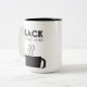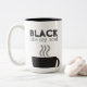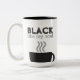 Lustigt Coffee mugg läser "Black like my själ". Illustrerar ett grafiskt kaffe mugg med ångbild.