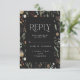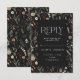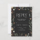 Svart stämningsfull blomster elegant bröllopsvar R.S.V.P kort. Slående modern trendig vinter höst svart, rost, salvia grön, naturlig och terrakotta torkad botanisk design. Del av en svit.