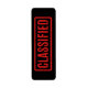 Svart stämplad, klassificerad etikett returadress etikett