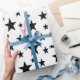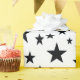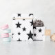 Abstrakt konst av olika storleksanpassade svart stjärnor mot en vitbakgrund.