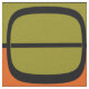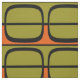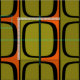 Retro-inspirerade paneler i skuggor av orange, oliv grönt och svart.
