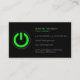 Coola Modern, svart, teknisk Professionell, Affärskort - med strömbrytare för Grönt/på av-knapp. Perfekt för teknikexpert, PC-reparationshjälp, reparation av bärbara datorer, datorprogrammerare, utvecklare av Software/spel/Webben-webbplats, teknisk hjälppersonal, DB-analytiker, databasadministratör, App Ingenjör, IT Project Manager, Pro Gamer, Console Gaming, Video Games Sales/Shop och många andra professioneller. Text kan ändras i teckensnitt, färg, storlek och Plats genom att klicka på den blå knappen 'CUSTOMIZE IT'. Tack för besöket.