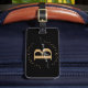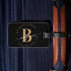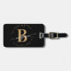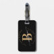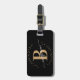 Unga, minimalistisk, enkel, modern, svart och guld monogram för första namn-manuset anpassningsbar personlig med monogrammat bagagemärke. Med ett inledande monogram och ett giftigt namn namnteckning skript i ett handskrivet kalligrafteckensnitt med svan och prickad cirkel ram runt ditt monogram.