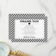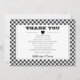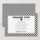 Tillfälle "Tack"-design med svarta och vita diagonala små buffelkontroller med en vit rektangel med svart mittpunkt för namn och datum.