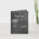 Tackkort - Svart tavla Mason-burk trädgård bröllop - i trendig men avslappnad typsnittsstil. En masonburk fylld med blommor och en fjäril i en kritliknande teckning på en svart tavla bakgrund.