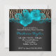 Svart Teal Blå Zebra Sweet 16 Födelsedagsfest Inbjudningar