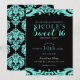 Svart & Teal Damask Chic Elegant Söt 16 Fests Inbjudningar
